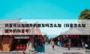 抖音可以加国外的朋友吗怎么加(抖音怎么加国外的抖音号)